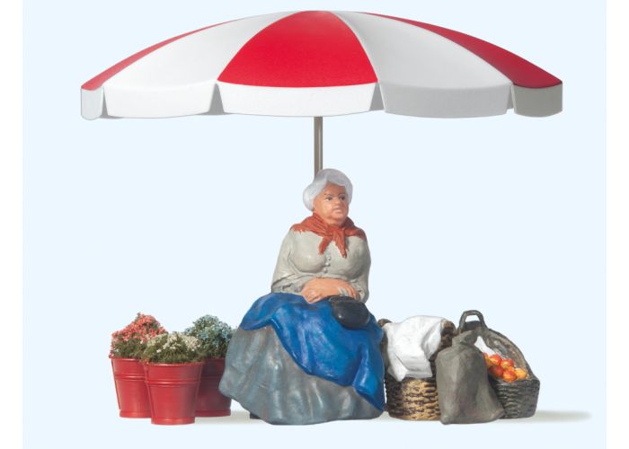 Marktfrau mit Schirm